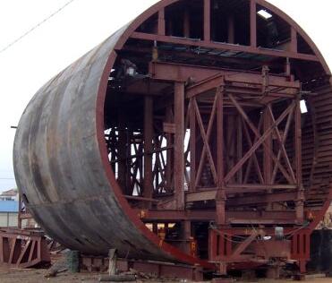 西安襯砌臺車主要用于中長隧道施工中,對施工進度、砼表面質(zhì)量要求較高。此類襯砌臺車設(shè)計為整體鋼模板、液壓油缸脫立模,施工中靠絲桿千斤支撐,電動減速機自動行走或油缸步進式自動行走,全部采用砼輸送泵車灌注。大部分襯砌臺車為該類臺車。設(shè)計該類襯砌臺車時,在滿足通過凈空要求的情況下,應(yīng)考慮門架內(nèi)側(cè)斜支撐下部安裝位置,盡可能靠近立柱下部,使之受力最好。門架橫梁應(yīng)足夠高,常規(guī)鐵路隧道不小于400mm,公路隧道不小于5500mm。模板端面與門架間的調(diào)整最小距離不小于250mm,否則將造成前后襯砌段搭接困難。